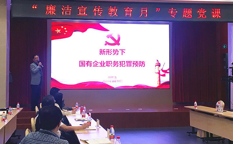 根據(jù)公司黨風(fēng)廉政建設(shè)宣傳教育月活動安排,9月30日上午,公司黨委副書記、紀委書記饒思源同志在30樓報告廳為黨員干部講授了題為“新形勢下國有企業(yè)職務(wù)犯罪預(yù)防”的